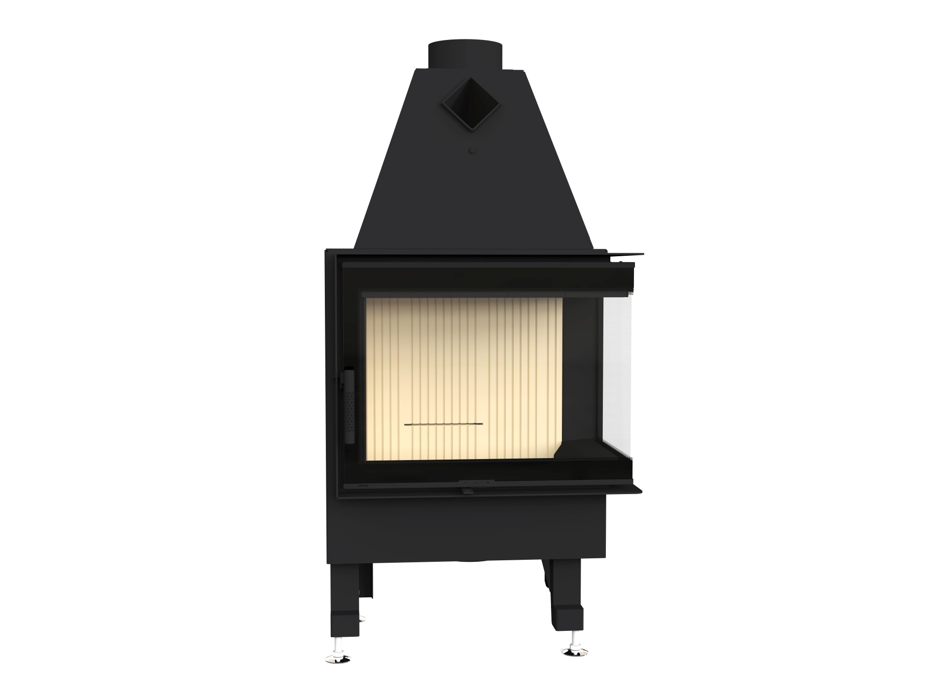 Передня частина топки оснащена термостійким склом Schott Robax, яке витримує температуру до 800°C, зберігаючи ідеальну прозорість навіть після тривалого використання.