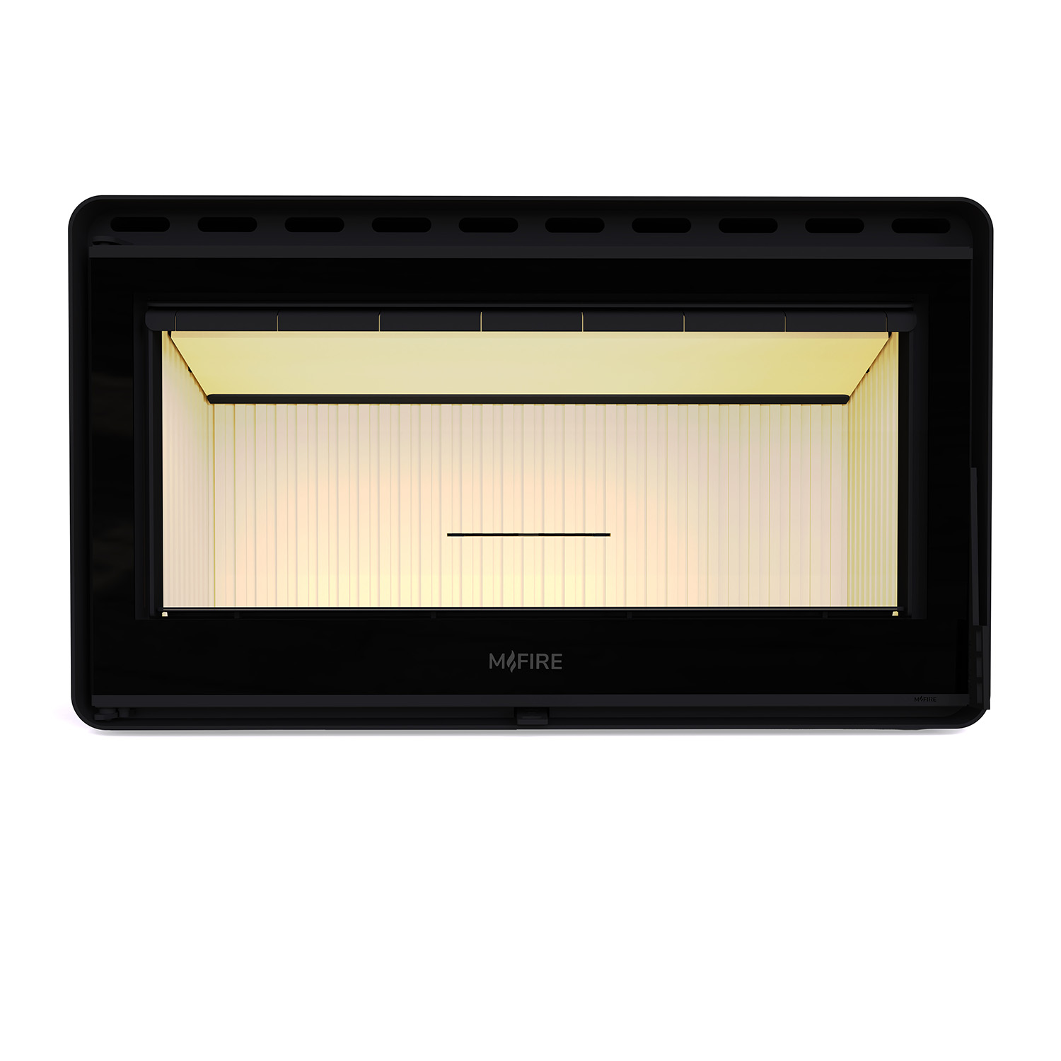 Велике фронтальне скло відкриває широкий огляд полум’я, створюючи відчуття справжнього каміна.