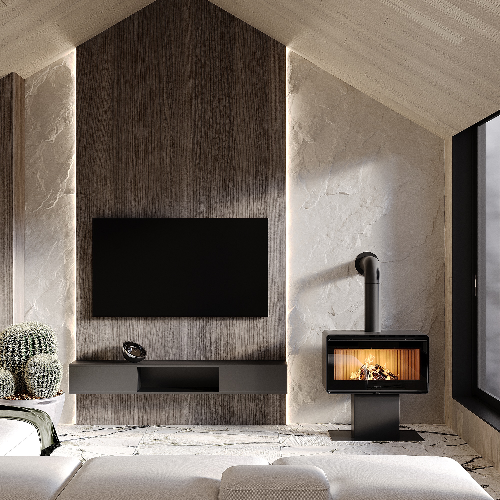 Строгі лінії та панорамне скло дозволяють гармонійно інтегрувати піч у будь-який інтер’єр – від класичного до мінімалістичного.