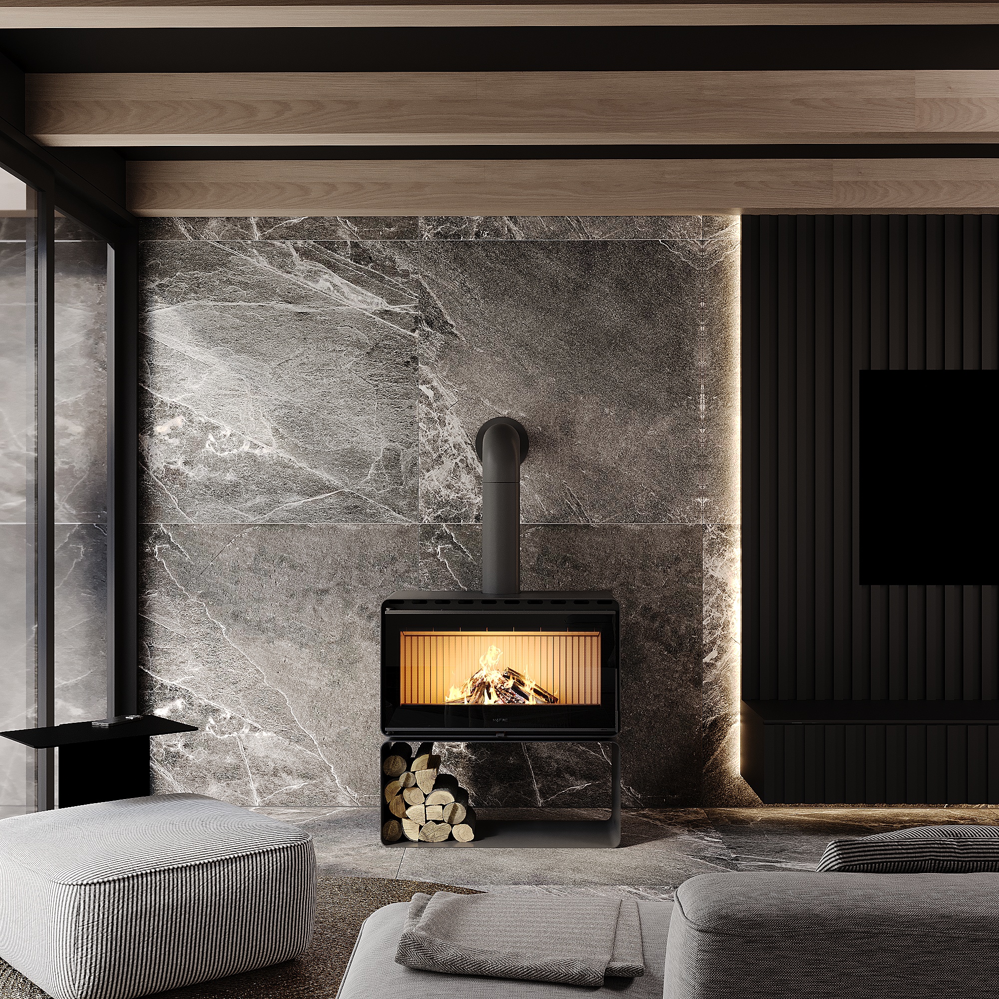Строгі лінії та панорамне скло дозволяють гармонійно інтегрувати піч у будь-який інтер’єр – від класичного до мінімалістичного.