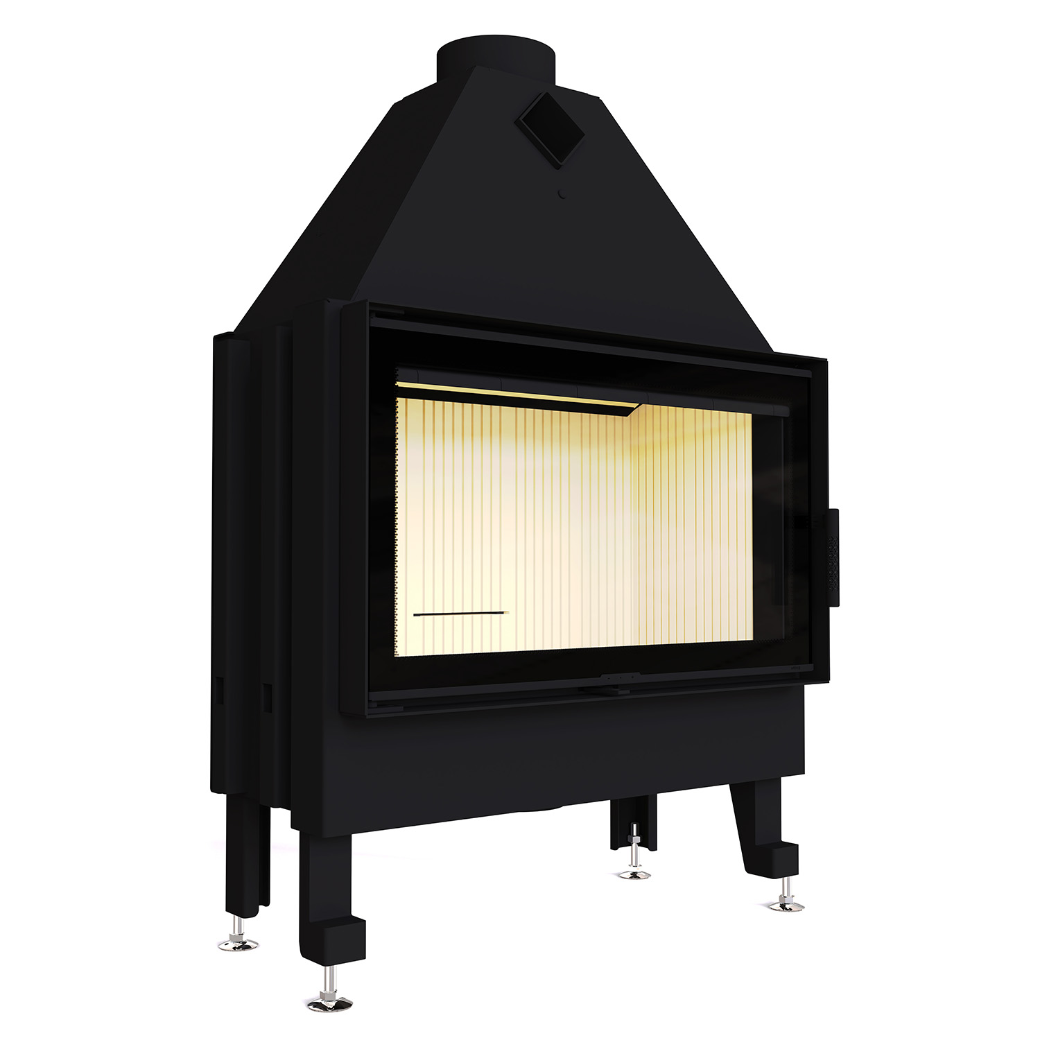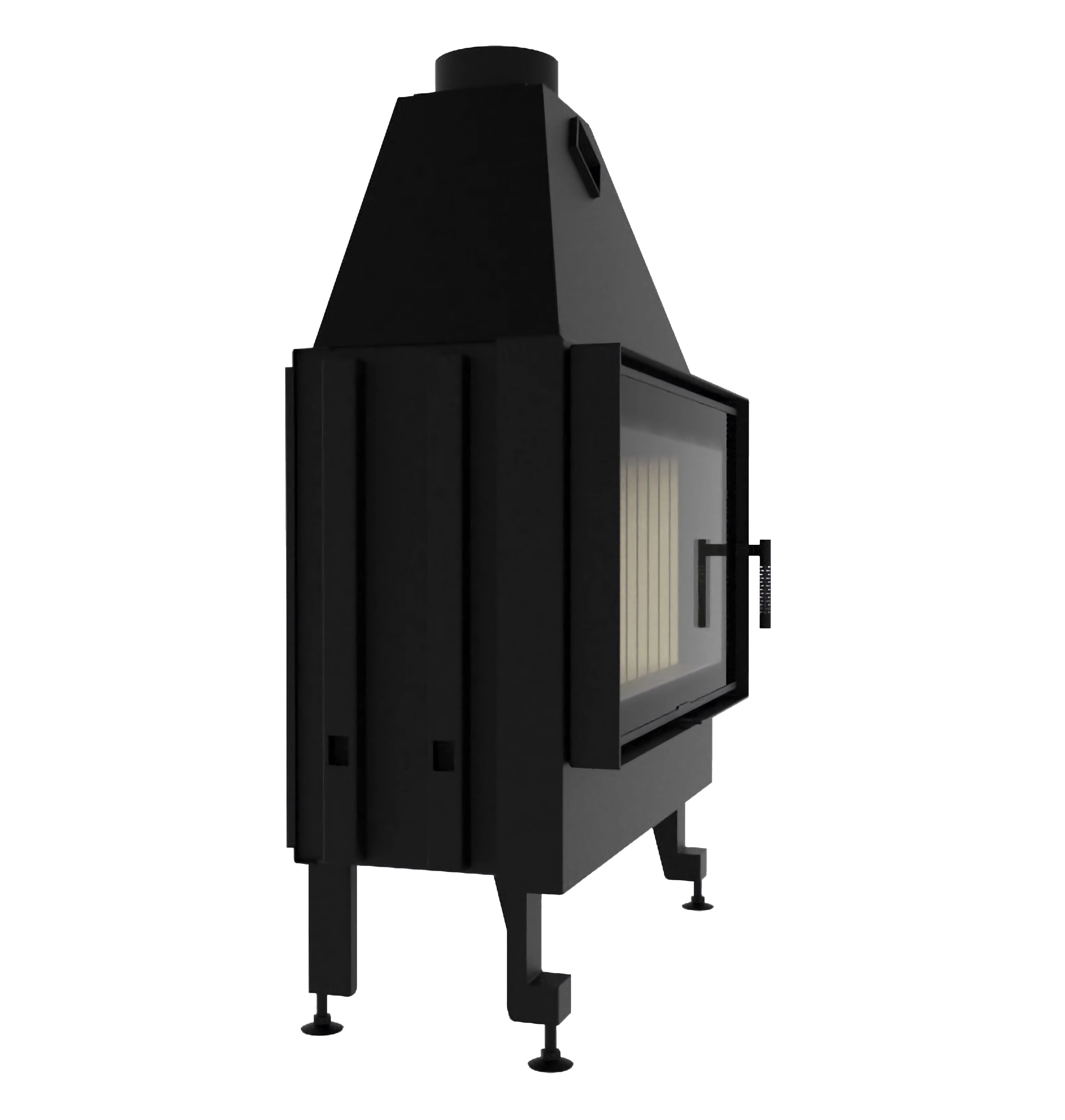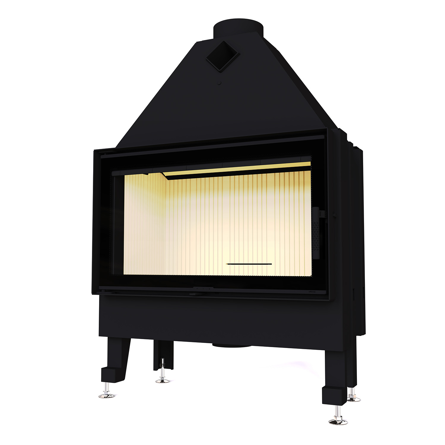 Передня частина топки оснащена термостійким склом Schott Robax, яке витримує температуру до 800°C, зберігаючи ідеальну прозорість навіть після тривалого використання.